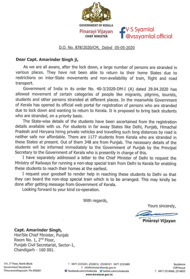 പഞ്ചാബില് 348 മലയാളി വിദ്യാര്ത്ഥികള് കുടുങ്ങിക്കിടപ്പുണ്ട്. റെയില്വേ സര്ക്കുലര് പ്രകാരം പഞ്ചാബില് നിന്നു കേരളത്തിലേക്ക് ട്രെയിന് വരണമെങ്കില് പഞ്ചാബ് തന്നെ വിചാരിക്കണം. അവരതു ചെയ്തില്ല. കേരള മുഖ്യമന്ത്രി പിണറായി വിജയന് അങ്ങോട്ട് കത്തയച്ചു, ആ കുട്ടികളെ നാട്ടിലേക്ക് അയയ്ക്കാന് നടപടി സ്വീകരിക്കാമോ എന്ന്. എന്തുകൊണ്ടോ അവര് ആ അഭ്യര്ത്ഥന മുഖവിലയ്ക്കെടുത്തില്ല. കോണ്ഗ്രസ്സിലെ ഏറ്റവും മാന്യതയുള്ള നേതാക്കളില് ഒരാളായ ക്യാപ്റ്റന് അമരീന്ദര് സിങ്ങാണ് പഞ്ചാബ് മുഖ്യമന്ത്രി. പ്രേമചന്ദ്രന്റെ സഖ്യകക്ഷിയാണ് കോണ്ഗ്രസ്. കള്ളം പറയുന്ന സമയത്ത് കോണ്ഗ്രസ് വഴി പഞ്ചാബിലെ കുട്ടികളെ കേരളത്തിലെത്തിച്ചിരുന്നുവെങ്കില് കൈയടി കിട്ടില്ലായിരുന്നോ? മുഖ്യമന്ത്രി പരാജയപ്പെട്ടിടത്ത് കോണ്ഗ്രസ്സിനും യു.ഡി.എഫിനും വിജയിക്കാനാവും എന്നത് ഇക്കാര്യത്തില് ഉറപ്പല്ലേ?