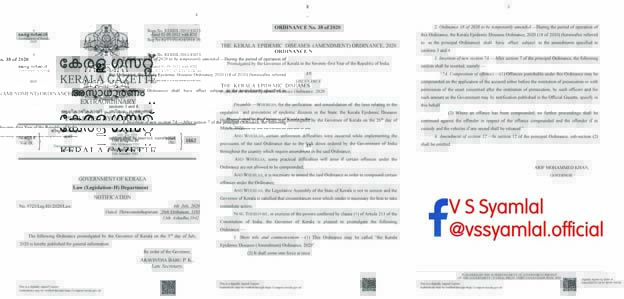 2020 മാർച്ച് 26ന് പുറപ്പെടുവിച്ച കേരള പകർച്ചവ്യാധി ഓർഡിനൻസ് 2020 ഭേദഗതി ചെയ്തു. 2020 ജൂലൈ 3ന് പുറപ്പെടുവിച്ച കേരള പകർച്ചവ്യാധി (ഭേദഗതി) ഓർഡിനന്സ് 2020 ആണ് ഇനി പ്രാബല്യത്തിലുണ്ടാവുക. ഇതനുസരിച്ച് കോവിഡ് നിയന്ത്രണങ്ങൾ 2021 ജൂലൈ വരെയോ സർക്കാർ മറിച്ചൊരു തീരുമാനമെടുക്കുന്നതു വരെയോ നിലവിലുണ്ടാവും.